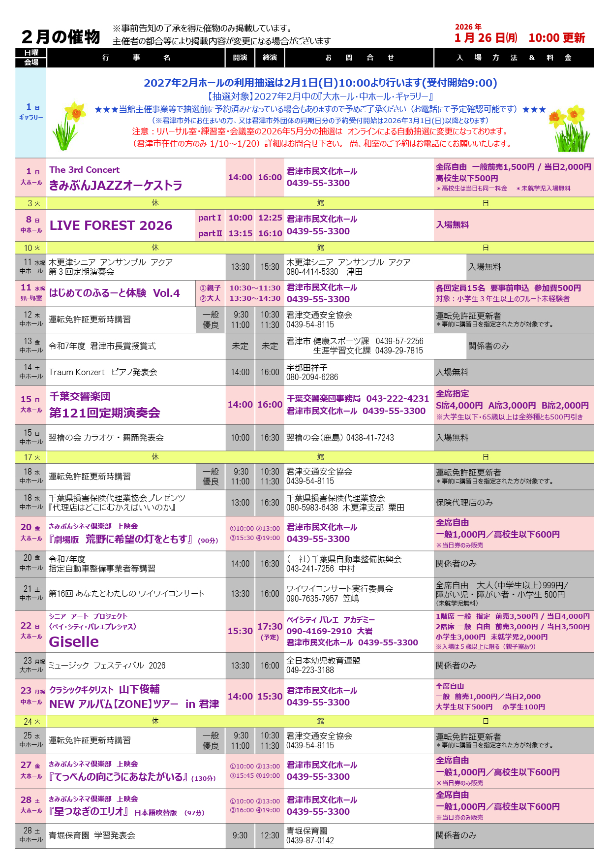文化ホール情報2月号掲載!|君津市民文化ホール公式ホームページ